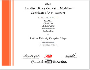 2022.5 我校学子在2022年美国大学生数学建模竞赛中再创佳绩
