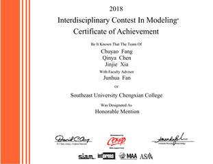 2018.5,我校学生在2018年美国(国际)大学生数学建模竞赛中创佳绩