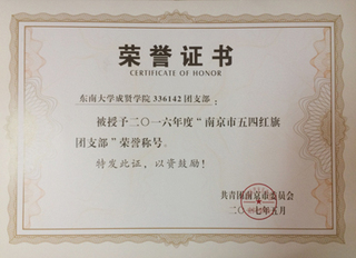 2017.6,我校336142团支部荣获“南京市五四红旗团支部”荣誉称号