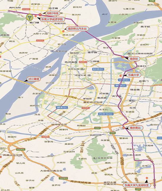 1、南京南站、南京站(北广场、东出口出站)、南京汽车客运站(小红山客运站):乘地铁3号线到东大成贤学院站下。