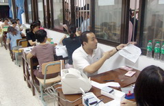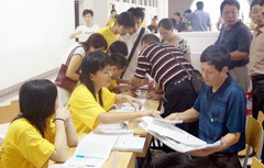 志愿者给家长送来茶水 | ![]() 志愿者给家长指示路线 |