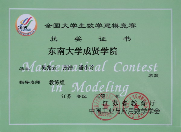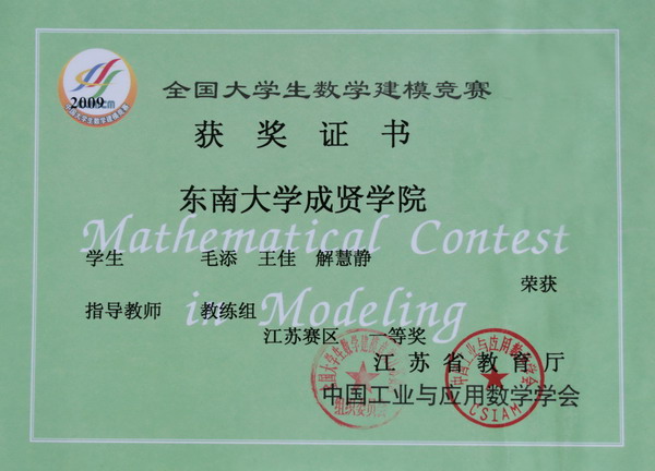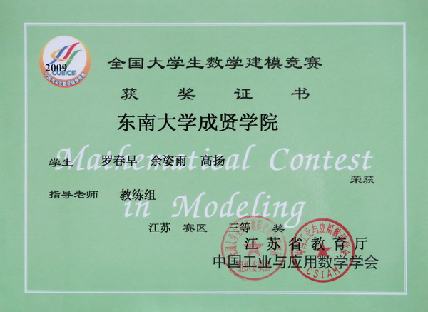 2009年全国数学建模比赛 一等奖1个队 三等奖2个队