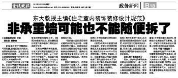 现在,很多市民拿到新房后都会对房屋进行一番“大改造”,又是拆墙又是打洞。这样对房屋结构的随意改造,将大大降低房屋的安全性能。高祥生教授说,即便拆除的不是承重墙,对房屋的整体稳定性、承载能力也将造成不良影响。因此,对破坏住宅安全的设计隐患,《规范》将有相应条文规定。