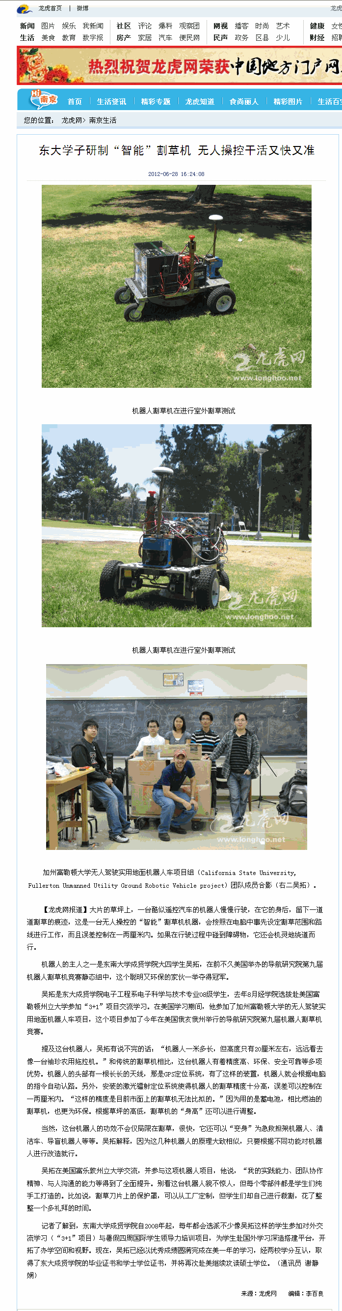 【龙虎网】东大成贤学子研制“智能”割草机 无人操控干活又快又准