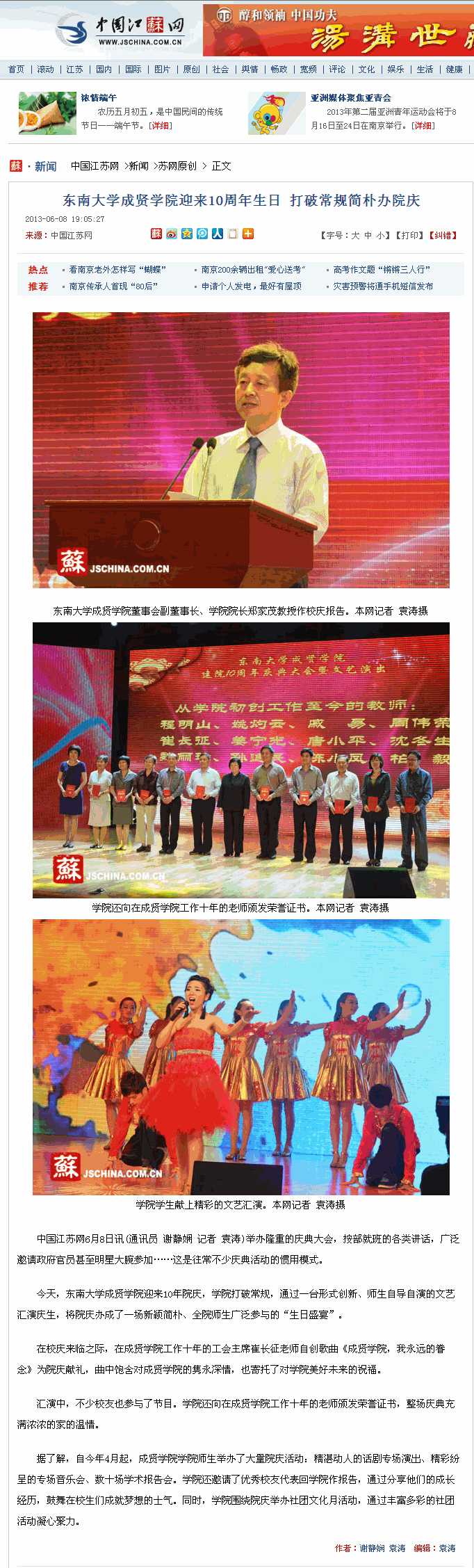 【中国江苏网】东南大学成贤学院打破常规简朴办院庆
