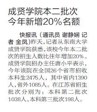 【现代快报】成贤学院本二批次今年新增20%名额