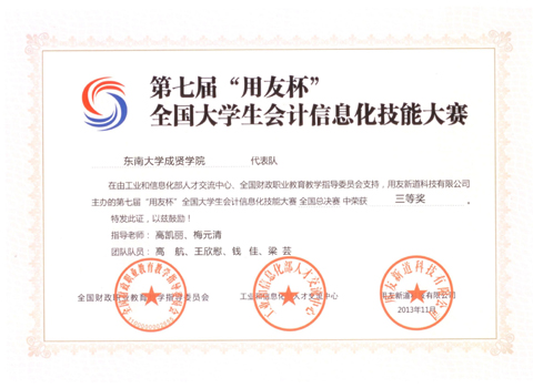 我院经济管理系会计、财务管理专业的8名学生在指导教师高凯丽、梅元清的带队下,分两组参加第七届“用友杯”全国大学生会计信息化技能大赛总决赛,荣获二等奖和三等奖。