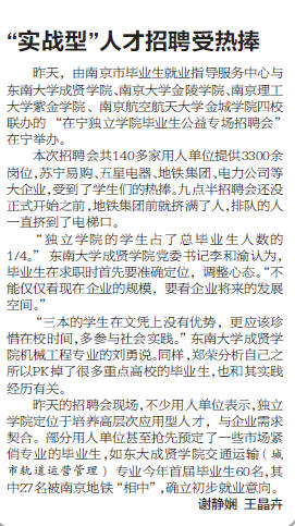 【南京晨报】“实战型”人才招聘受热捧