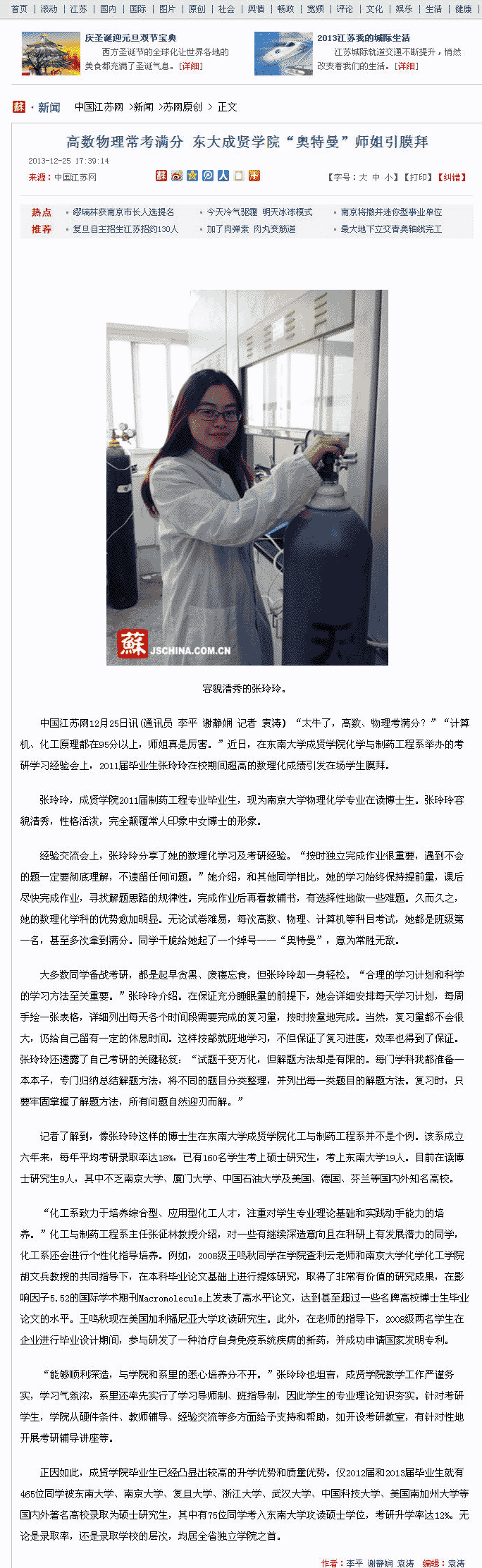 【中国江苏网】高数物理常考满分 东大成贤学院“奥特曼”师姐引膜拜