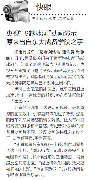 【江南时报】央视“飞越冰河”动画演示原来出自东大成贤学院之手
