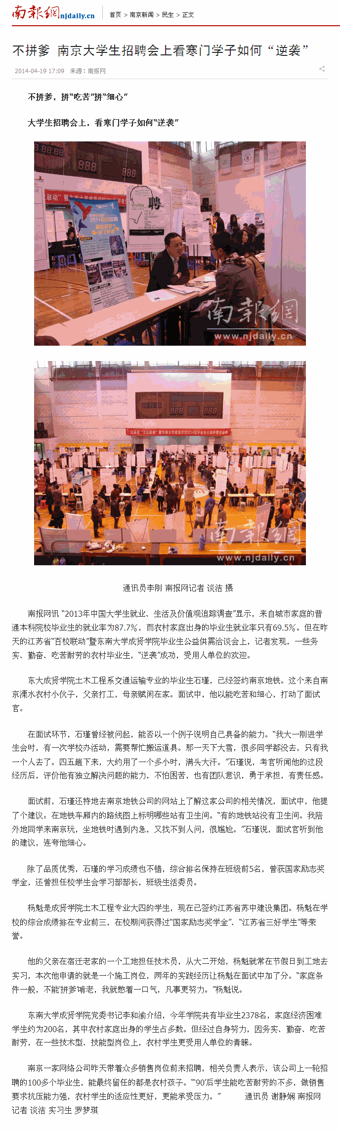 【南报网】大学生招聘会上,看寒门学子如何“逆袭”