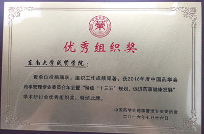 2016.9,我校再次荣获中国药学会药事管理专业委员会学术研讨会优秀组织奖
