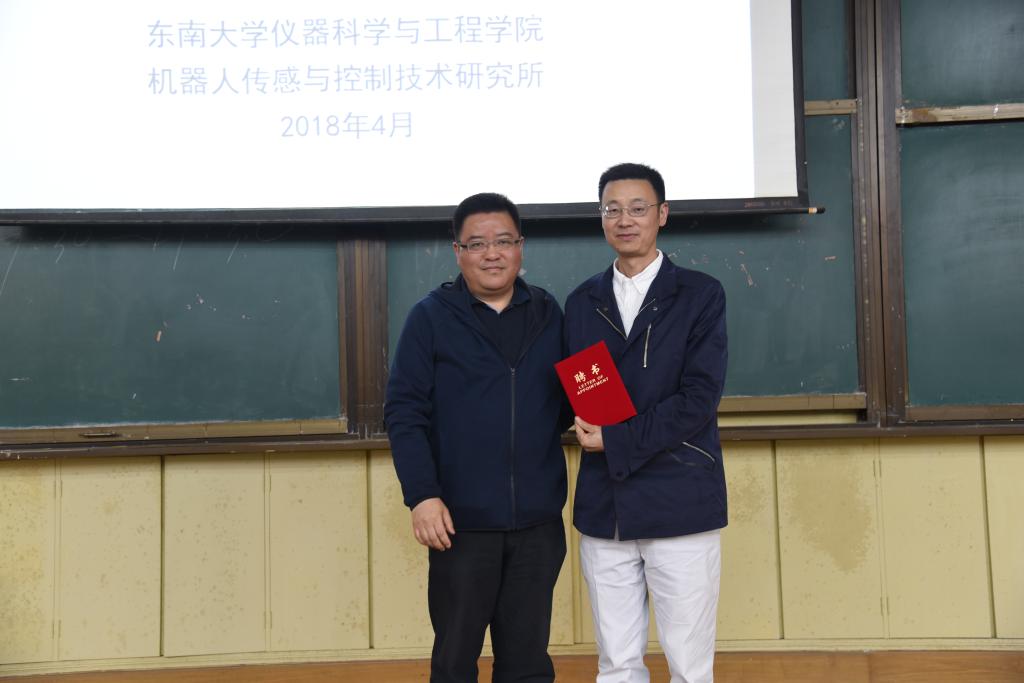 4月11日,东南大学仪器科学与工程学院院长、博士生导师宋爱国在华罗庚馆101教室为电子与计算机工程学院师生作题为《力觉临场感遥操作机器人研究进展》学术讲座。讲座前,我院常务副院长郑建勇向宋爱国教授颁发客座教授聘书,授聘仪式由电子与计算机工程学院党总支书记丁江主持。