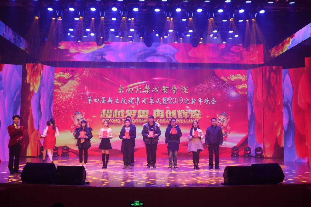 2018年12月28日晚,由学生处、校团委主办,校大学生艺术指导中心、学生会联合承办的“不忘初心,梦想起航”东南大学成贤学院第四届新生绽放季闭幕式暨2019迎新年晚会在综合楼报告厅隆重举行。校党委书记徐悦,党委副书记、副院长王荣,党政办主任周伟荣,学生处处长、工会主席唐小平,各学院党总支书记、综合办主任、老师,部分校友以及近800名学生现场观看演出。本次演出同时在校团委新浪微博进行了视频直播,累计1.9万人次点击观看,与现场观众共同迎接2019年的到来。