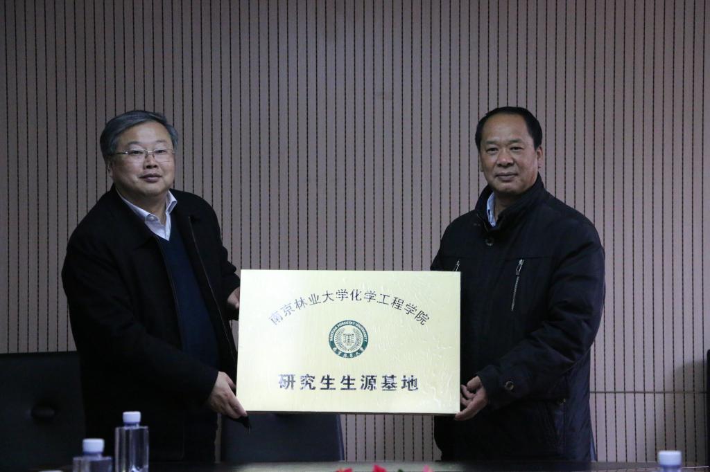 会上,林保平院长和王飞院长分别代表东南大学成贤学院制药与化学工程学院、南京林业大学化学工程学院签订了共建研究生生源基地协议,并举行了授牌仪式。会后,王飞院长为制药与化学工程学院学生作了主题为“绿色化学化工与未来”的讲座,并与2016级有考研意向的学生们进行了互动交流。