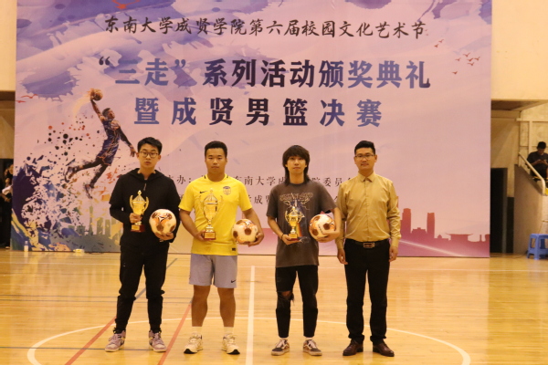 5月21日晚,由校团委主办,校学生会体育部承办的第六届校园文化艺术节“三走”系列活动颁奖典礼暨男篮决赛在后藤体育馆举办。东南大学成贤学院团委书记、人武部部长潘明烽,制药与化学工程学院综合办主任刘静,制药与化学工程学院分团委书记刘庆,机械与电气工程学院辅导员赵小宁,校团委老师冯杭州以及500余名学生共同参加了此次活动。