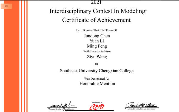 近日,2021年美国大学生数学建模竞赛(MCM/ICM)评审结果正式公布。东南大学成贤学院在本届竞赛中获得了两项国际二等奖(Honorable Mention),打破了以往的获奖记录。
