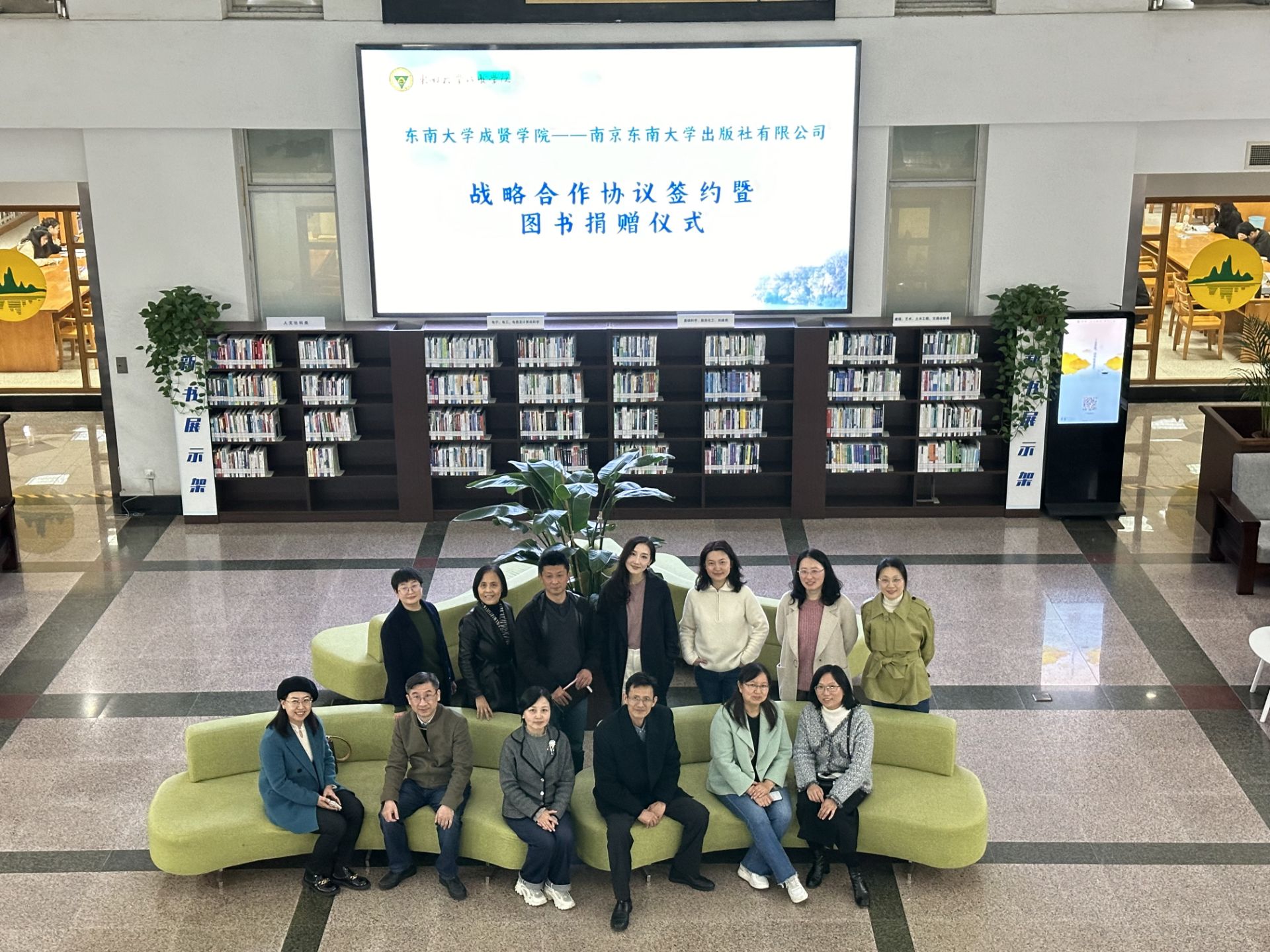 “心合意同,谋无不成”。11月21日下午,东南大学成贤学院图书馆5013会议室里掌声阵阵,东南大学成贤学院与南京东南大学出版社战略合作协议签约暨图书捐赠仪式在热烈的气氛中举行。东南大学出版社社长白云飞,东南大学成贤学院戴玉蓉副院长,成贤学院相关部门领导、各二级学院院长、教学院长、综合办主任、关心专著及教材出版的教师代表,出版社相关部门领导和编辑参加了本次仪式。仪式由东南大学成贤学院图书馆馆长封晓倩主持。