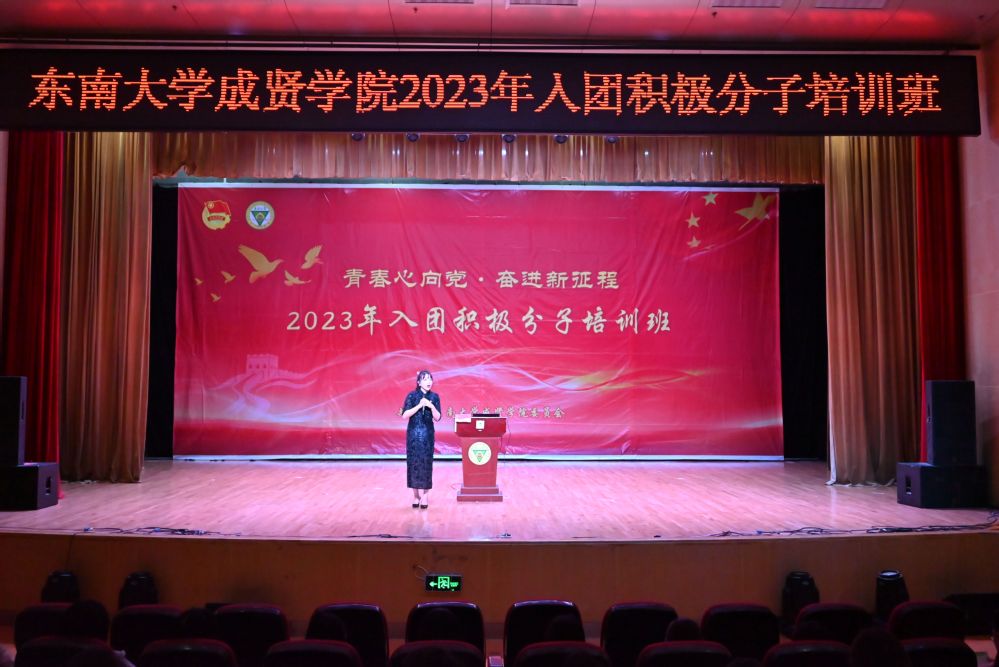 东南大学成贤学院团委于10月-11月在综合楼报告厅举办了2023年入团积极分子培训班,分别邀请了制药与化学工程学院分团委书记刘庆、建筑与艺术设计学院分团委书记江晶、经济管理学院分团委书记潘天娇担任主讲嘉宾。