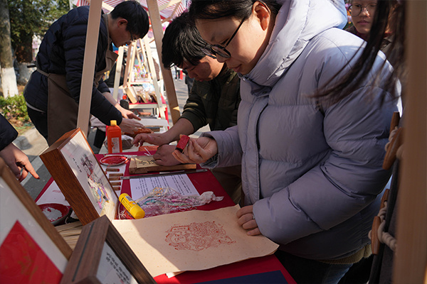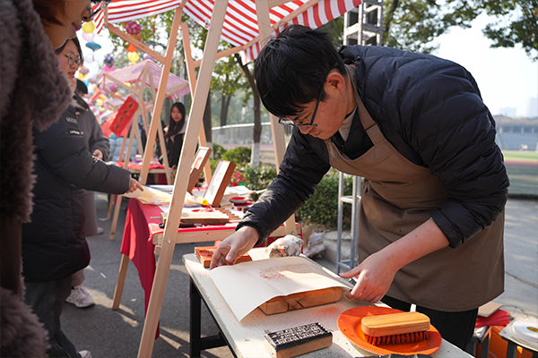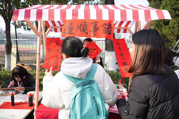 欢笑游园辞旧岁,师生齐聚共跨年。本次游园会以传承弘扬中华优秀传统文化为主题,结合灯会、舞龙、写春联、糖画、烫画、泥人面塑、篆刻印刷等形式,立足实践,创新中华优秀传统文化在学校的当代表达形式,打造青年学生喜闻乐见、易于接受的主流文化,使青年学生在亲身参与、情境体验中不断提升对中华优秀传统文化的系统认知与情感认同,提升中华优秀传统文化在校园发展中的感染力。活动中,学生表演了舞龙、舞蹈《过年》、歌舞《时代感》,呈现了欢乐喜庆气氛。夜晚的灯会流光溢彩、竞相璀璨,同学们驻足拍照,发挥“互联网+”优势,通过短视频、直播等形式来传播优质内容,将中华优秀传统文化以“更年轻”的方式呈现给大众,增强中华优秀传统文化传播效能和影响力。