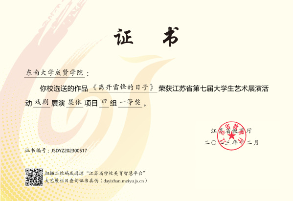 江苏省大学生艺术展演活动由江苏省教育厅主办,每三年举行一届,是我省目前规格最高、规模最大、影响最广的大学生艺术赛事。本届展演活动自启动以来,学校领导高度重视,校团委、大学生艺术指导中心精心筹备、组织召开工作协调会,指导教师与参赛学生们锐意进取、全力以赴,以高度的责任感和饱满的参赛热情打造具有成贤特色的高质量艺术作品,充分彰显了我校美育工作的育人实效和成贤学子昂扬向上、朝气蓬勃的青春风采。