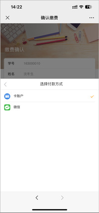 (1)未开通校园卡账户的用户(如东大研究生),点选完待充值宿舍后,系统默认支付方式为“卡账户”,可能会提示“未获取到用户卡片信息”,此时点选“支付方式”,将支付方式改为“微信”即可正常缴费。