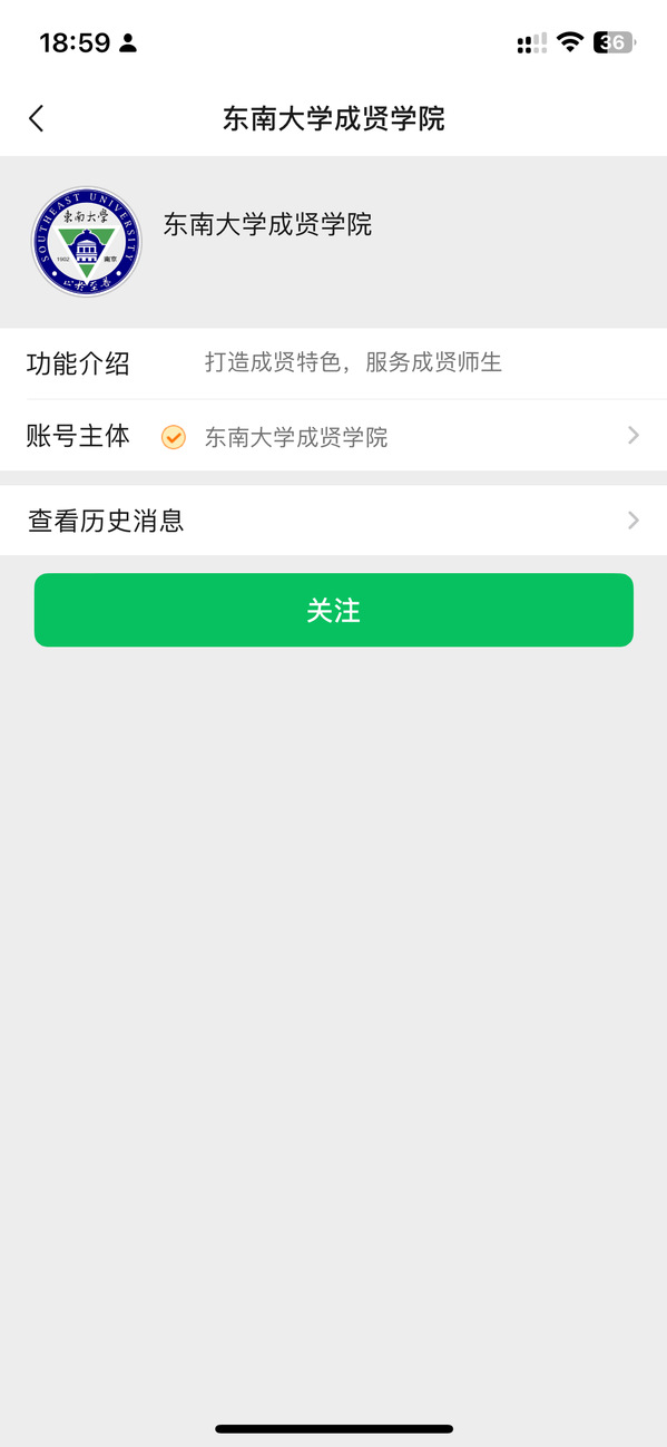 二、关注“东南大学成贤学院”企业公众号