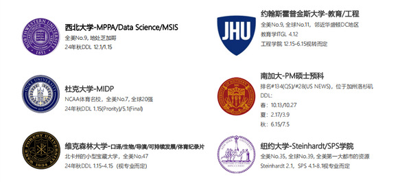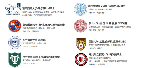 *以上美国项目DDL为2024秋入学,如果申请2025秋入学请顺延一年。