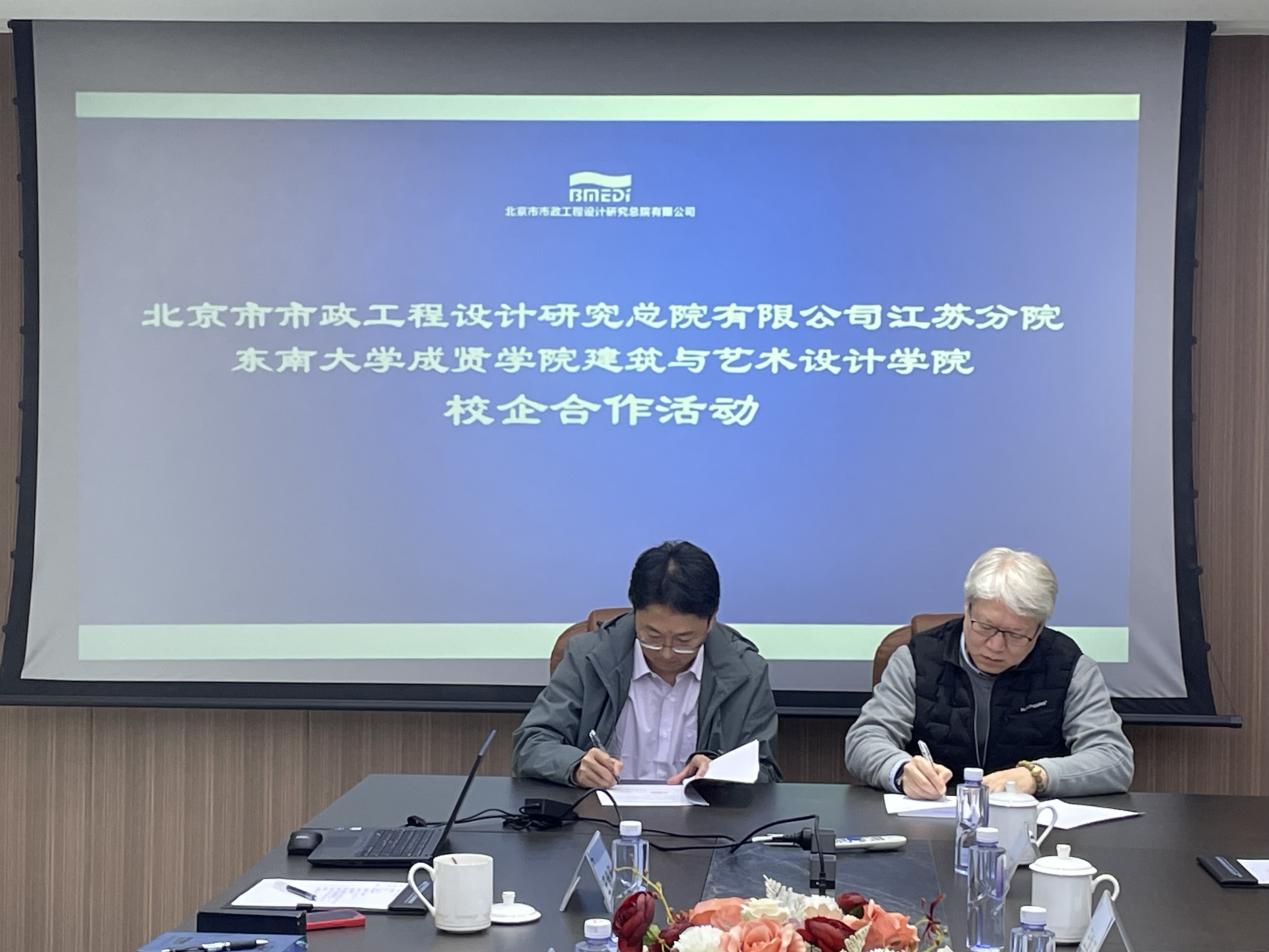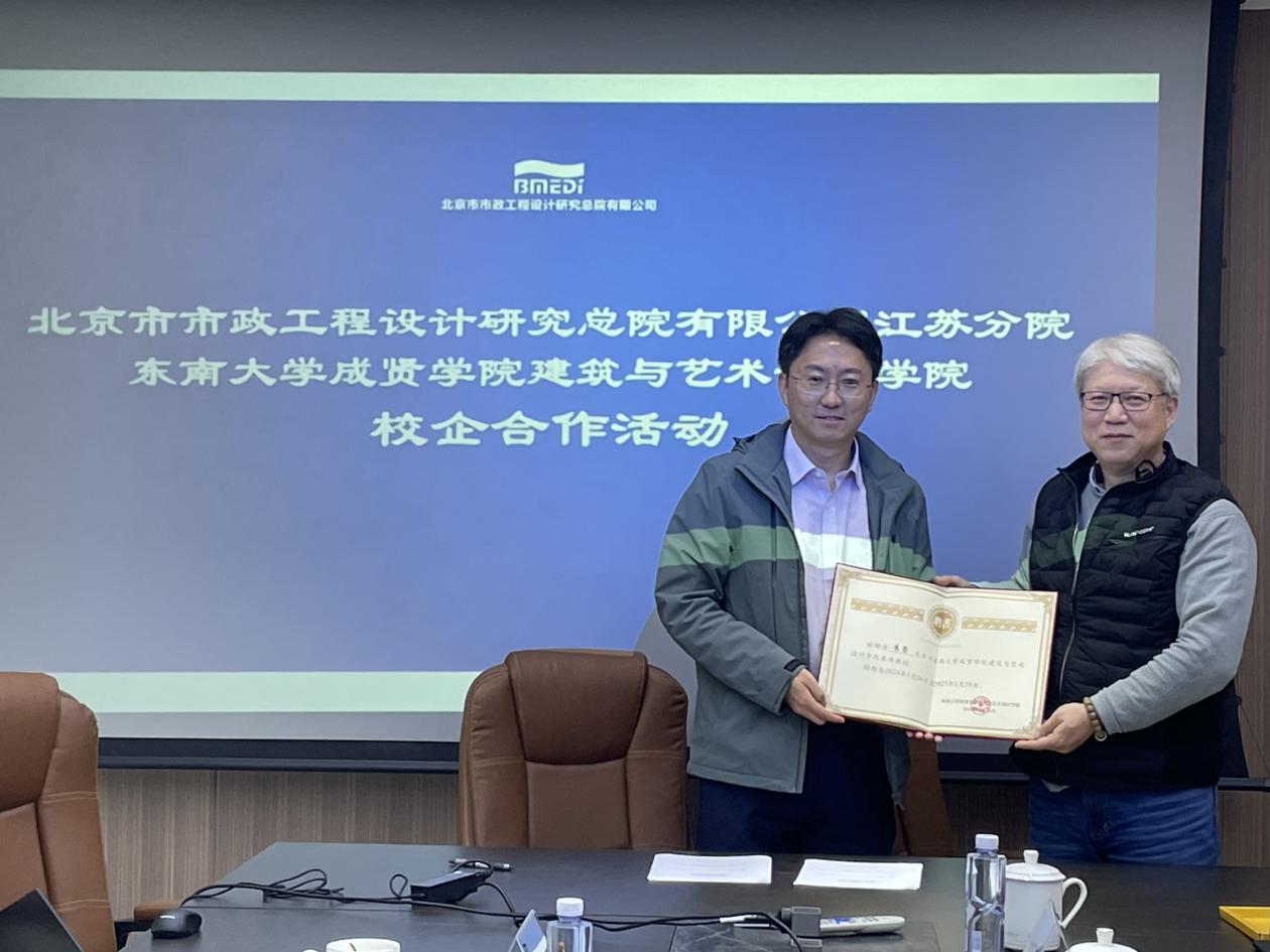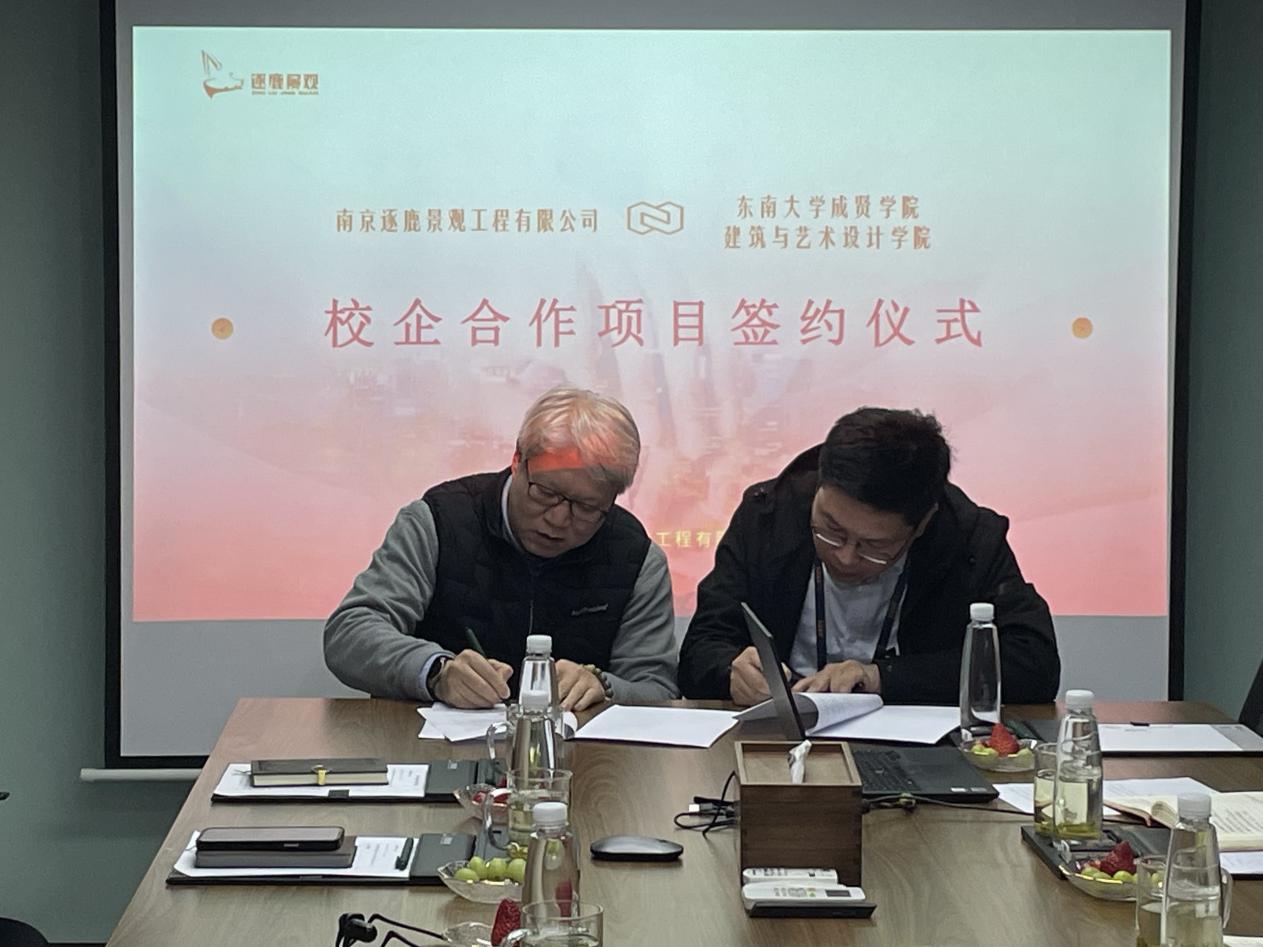 经过友好交流协商,建艺院与北京市市政工程设计研究总院有限公司江苏分院签订校企合作协议书,为江苏分院院长袁蕾先生颁发客座教授聘书;与南京逐鹿景观工程有限公司签订就业实习实践基地协议书,并挂牌“东南大学成贤学院建筑与艺术设计学院就业实习实践基地”。今后,建艺院将与企业开展产学合作协同育人项目,促进实践育人和毕业生就业。