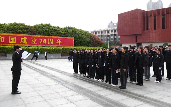 当日在各场馆进行了庄严的凭吊仪式,巍峨耸立的纪念碑下同学们敬献花圈、献花,鞠躬行礼、全场默哀、告以哀思,缅怀丰功伟绩,祭奠烈士英灵。学生代表分别介绍了各纪念馆的历史背景和精神内涵,先烈开道为后人,后人继业慰忠魂。同学们高举右拳,重温入团誓词,通过一句句铿锵有力的誓词,表达了对党忠诚、为共产主义奋斗终身的坚定决心。凭吊仪式结束后,同学们依次参观展馆里珍贵的革命文物和写实的历史照片,认真倾听讲解员讲述革命先烈抛洒热血为国捐躯的英雄事迹。跨越时间的鸿沟,追忆那段惊心动魄、震天动地的革命岁月,感悟革命先烈们浓厚的爱国情怀和英勇顽强的牺牲精神,让全体同学接受了一次深刻的思想洗礼和党性教育。通过“实景课堂”现场重温党的光辉历程,感悟英烈精神,进一步坚定了青年学生的初心使命和理想信念。