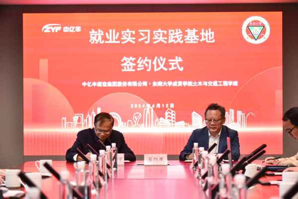 中亿丰建设集团股份有限公司总工程师韩树山首先对郭正兴院长、杨阳书记一行的到来表示热烈欢迎,同时他围绕企业发展历史、企业文化、企业经营范围以及集团在“智能建造”方面的发展情况向与会领导和老师做了介绍。韩树山总工程师表示,中亿丰集团希望加强与高校的产教联合体建设,深化校企产教融合,助力学生高质量就业,为地方经济发展服务。土木与交通工程学院院长郭正兴围绕学院创建江苏省一流专业,向与会领导介绍了学院在专业建设、师资队伍建设、人才培养以及校企合作等方面的情况。郭正兴院长希望加深与中亿丰集团的合作,特别是在“智能建造”领域,依托学院开办的“智能建造”新专业,立足苏州地方经济发展,在人才培养、科技研发、项目孵化、成果转化等方面做好校企供需对接,让更多成贤学子能够选择中亿丰、扎根中亿丰。随后,郭正兴院长与张浩副总裁共同签订了就业实习实践基地协议,杨阳书记与张浩副总裁共同为“东南大学成贤学院土木与交通工程学院就业实习实践基地”揭牌。