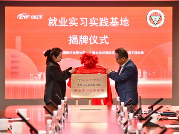 杨阳书记与张浩副总裁共同为“东南大学成贤学院土木与交通工程学院就业实习实践基地”揭牌