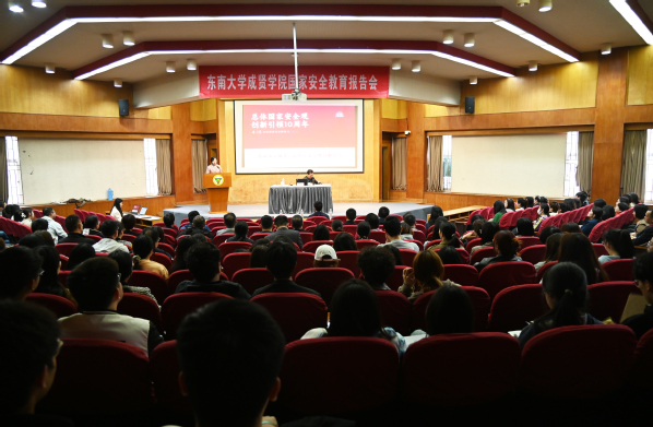 2024年是习近平总书记提出总体国家安全观10周年,为深入贯彻党的二十大精神,引导师生深入贯彻落实习近平总书记关于加强国家安全教育的重要指示批示精神,4月12日下午,学院特邀请江苏省国家安全厅二级调查专员、二级巡视员霍越忠为学校师生开展国家安全教育宣讲。东南大学成贤学院副院长戴玉蓉、党政办公室主任周伟荣出席活动。戴玉蓉副院长主持宣讲会。
