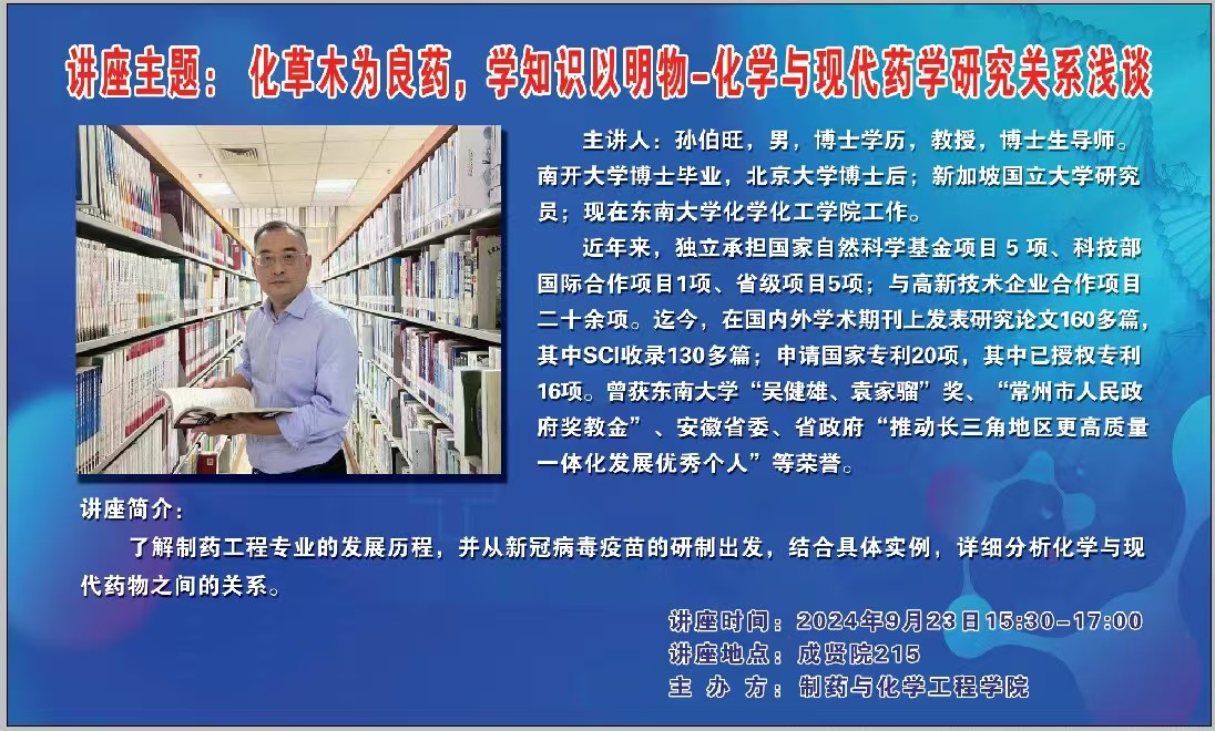 化草木为良药,学知识以明物--化学与现代药学研究关系浅谈