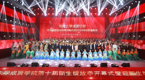 10月21日、22日晚,东南大学成贤学院第十届新生绽放季开幕式暨2024年迎新生晚会在学校后藤体育馆隆重举行。学校党委书记张志胜,常务副院长黄学良,党委副书记、副院长、纪委书记王荣,副院长戴玉蓉、魏丽玲,相关职能部门负责人,二级学院党总支书记、院长、副书记、综合办主任、分团委书记、其他老师,以及泰山新村派出所副所长李庆伟,志愿服务共建单位路西社区党委书记孙良,活动赞助商文登考研华东区教学总监、南京校区总校校长张伟,本土潮牌TIMEBIKE主理人尹鑫鑫和龙湖南京江北天街总经理肖锐应邀参加活动,与2024级新生们共度本场晚会。