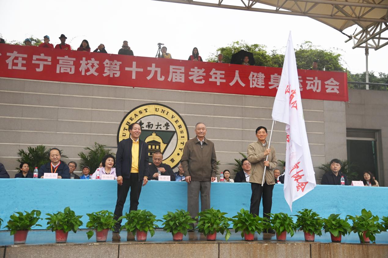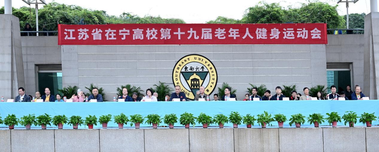 开幕式上,东南大学党委常务副书记刘攀致欢迎辞,他代表东南大学党政对江苏省在宁高校老年人体育协会的悉心指导、25所高校退休教职工们的积极参与、协办方东南大学成贤学院党政领导、老师与所有在现场的裁判员、运动员、工作人员与志愿者表示衷心的感谢。他提出,老年人健身运动会充分展现了老年人较好的精神风貌,希望老年同志们展现最佳状态,取得最佳成绩。江苏省在宁高校老年人体育协会李国荣理事长致辞,他介绍了历届江苏省在宁高校老年人运动会举办情况,勉励在场老年同志保持健身热情,保证人身安全,赛出最佳状态。在宁高校第十九届老年人健身运动会总裁判长徐南强对赛事安排作了相关说明。随后进行了运动会会旗交接仪式。最后,江苏省老年人体育协会副会长陈建安宣布江苏省在宁高校第十九届老年人健身运动会开幕。