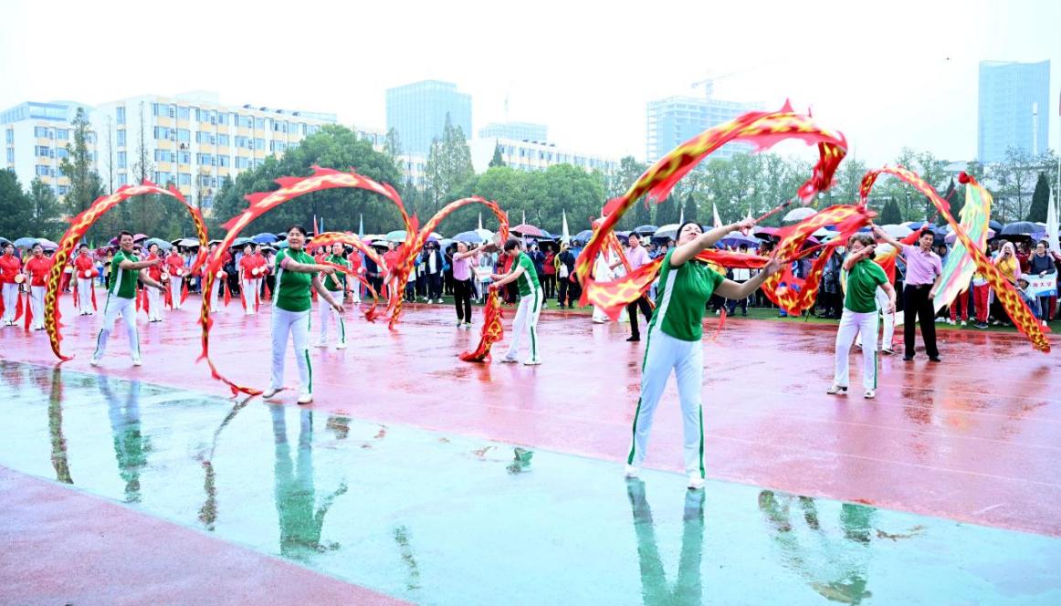 开幕式上东南大学离退休老同志们带来腰鼓表演“龙飞凤舞”