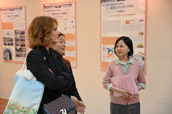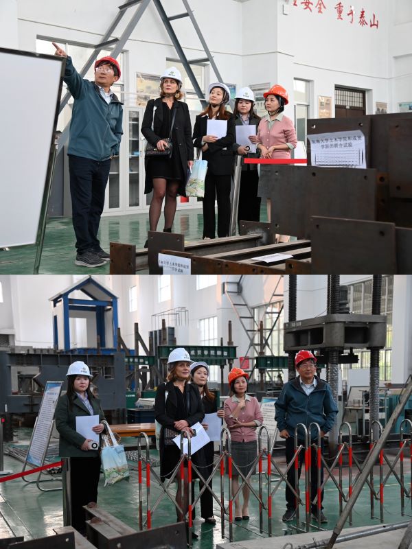随后,双方人员移步校图书馆五楼参观学校发展成果展及学生优秀作品展,接着参观我校极具工科特色的土木与交通实验实训中心。通过参观,法方对我校的专业设置有了更直观的了解。