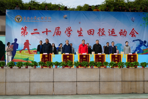 11月8日上午,东南大学成贤学院第二十届学生田径运动会在学校田径场举行。东南大学体育系党总支书记蒋波、体育系主任金凯,东南大学成贤学院党委书记张志胜、常务副院长黄学良、副院长魏丽玲、各职能部门负责人、二级学院党总支书记、综合办主任和辅导员参加了运动会开幕式。学院副院长戴玉蓉主持并宣布运动会开幕式开始。