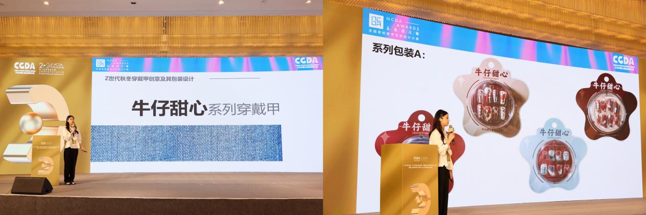 近日,2024第12届未来设计师•全国高校数字艺术设计大赛(NCDA)大赛落下帷幕。我校建筑与艺术设计学院学生作品在本次大赛中获得多项国家级、省级奖项,再创该项赛事获奖数量和质量历史新高。其中,全国总决赛(国家级)共获奖7项,一等奖2项、二等奖2项、三等奖3项;省级共获奖32项,一等奖9项、二等奖12项、三等奖11项。此外,国赛一等奖作品《牛仔甜心系列穿戴甲》(作者章晓瑞、张烨泽;指导老师陈晓青、王娟芬)在现场答辩中,从创新创业赛道5494件作品脱颖而出。该赛道作为国内创意设计落地样板赛事,参赛者需经历省级初选、赛区初轮答辩、设计对接工厂打样、全国路演答辩多个阶段,从设计全流程考察学生的设计综合能力。