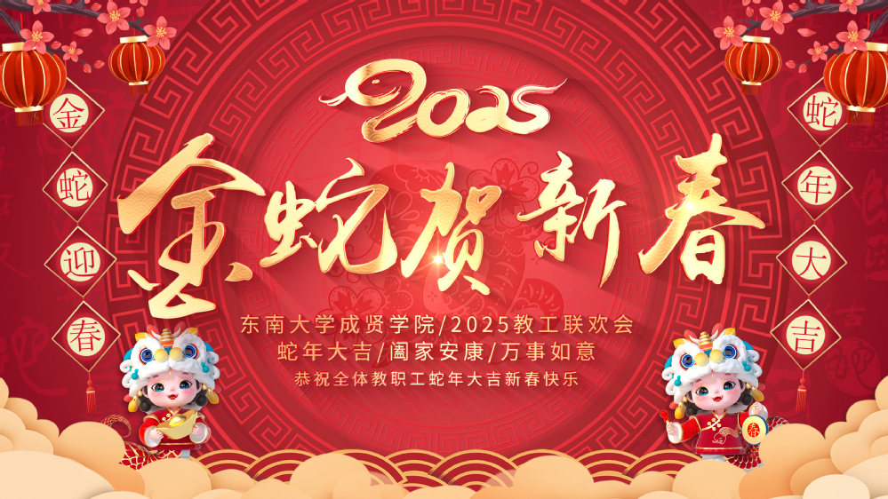 全校各单位:2025年教工联欢会将于1月10日(星期五)上午10:00在学校综合楼报告厅举行,届时请全体教职工准时参加。(1月9日下午13:30参演节目进行彩排,请各演出单位提前做好准备)。东南大学成贤学院工会2025年1月2日