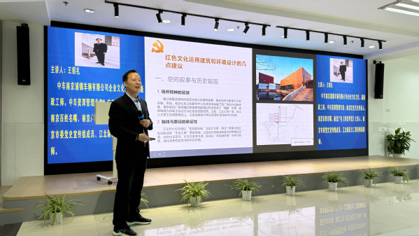 在讲座中,王绍礼主任首先介绍了南京江北红色文化和党史故事,从南京早期马克思主义传播的筚路蓝缕,到王荷波创建浦镇机厂“中华工会”、领导工人运动的英勇斗争,再到建立南京首个共产党组织的壮举,带领同学们深切感受到革命先烈“追求真理、不怕牺牲”的信仰力量。接着,王绍礼主任通过浦镇公司红色主题教育广场、江北新区红色教育广场、南京渡江胜利纪念馆等案例分享,展示了红色文化如何与建筑、环境深度融合,同时提出了红色文化元素运用于建筑和环境设计的几点建议,包括将革命历史、精神内涵与现代设计理念相结合,从空间布局、建筑形态、展现手段等方面入手,综合考虑,系统谋划,着重强调了建筑的空间叙事需与历史锚固,平衡好其教育性和休闲性,并且在体现设计美学、弘扬艺术时代性的同时做到自然与文化的共生,以及注重创新表达与跨界融合,为未来红色文化空间的营造提供了宝贵思路。