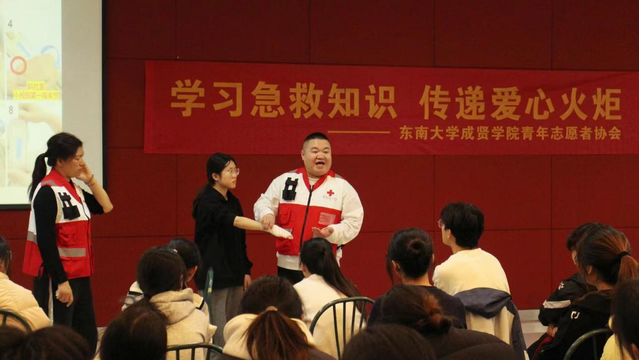 为进一步增强我校学生急救意识,提高正确应对校园安全事故和应急救护的能力,3月30日,校团委志愿者工作部携手南京市红十字应急救护培训中心,邀请叶晓东、马薇蓉、朱玉霞三位老师,在综合楼307报告厅开展了“学习急救知识,传递爱心火炬”初级救护员培训活动。40余名同学踊跃参与,所有参训学生均顺利通过考核,成功取得初级救护员证。