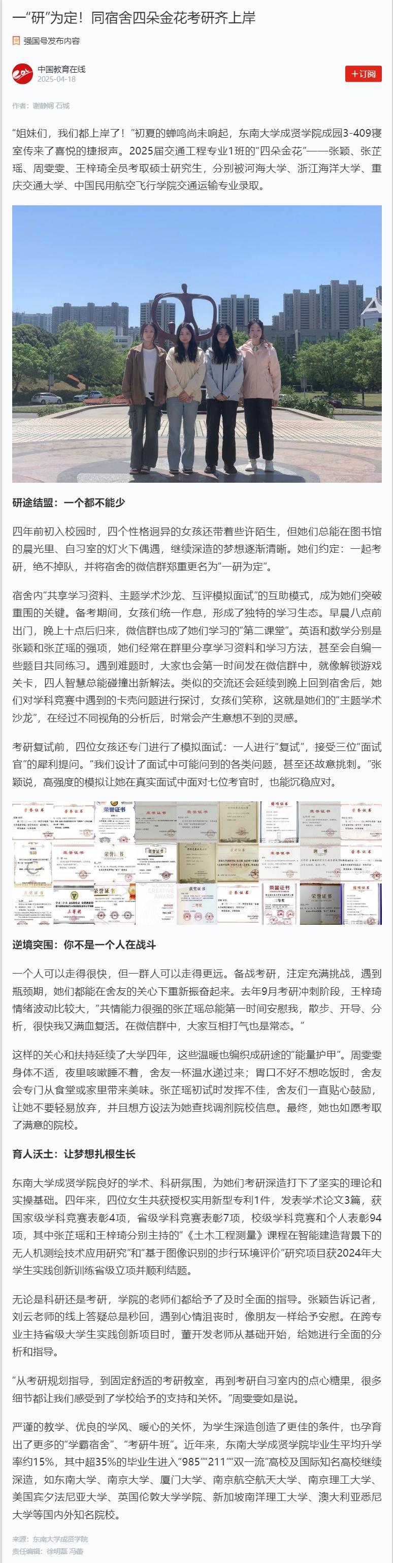 【学习强国 中国教育在线】一“研”为定!同宿舍四朵金花考研齐上岸