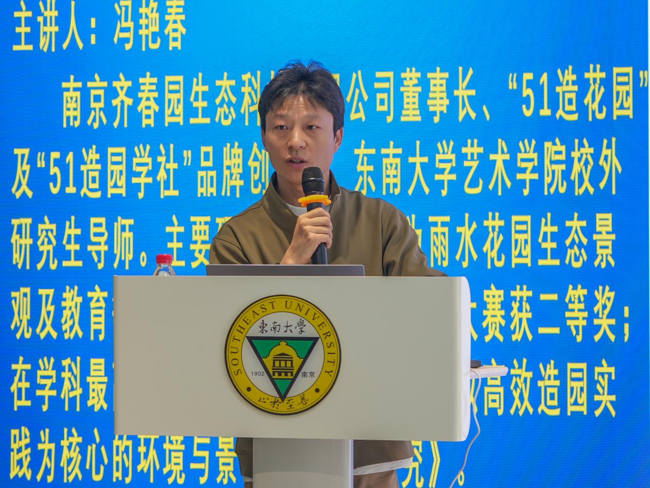 冯艳春老师“51造花园”及“51造园学社”品牌创始人、东南大学艺术学院校外研究生导师在讲座中,他结合自身创业经历和教学实践,从破局、重构、进化、突围、行动五个方面阐述空间艺术设计当前面临的挑战与机遇,解析AI技术如何助力超级个体实现更加高效、个性、智能的设计与多重职业赋能“破局”开篇,冯老师指出人才需求的变化AI技术冲击正倒逼行业转型,兼具创意、技术与跨界能力的“超级个体”成为稀缺资源。借助AI工具成为个人能力的“外挂”“超级个体”可将设计技术材料等多学科知识融会贯通快速生成方案谈及“重构”,冯老师对比匠人经验与AI量化分析的差异,AI技术正在推动行业从“造园”转向生态修复与文旅IP打造,并以某城市利用AI规划绿地为例,展现数据驱动设计的潜力。在“进化”环节,冯老师展示了如何用AI进行实战场景拆解,将设计师拥有独特审美哲学与AI的数据分析能力相结合,可事半功倍。最后,冯老师呼吁以“AI执行,人类决策”模式突围,AI处理数据生成方案,设计师聚焦创意与人文关怀,鼓励师生切入智慧城市、元宇宙虚拟景观等新兴赛道,并以“千磨万击还坚劲”激励青年拥抱变革。之后,冯艳春老师带领同学们来到室外演示了先进的造园工具,同学们对这样的新科技产生了浓厚的兴趣并积极参与互动
