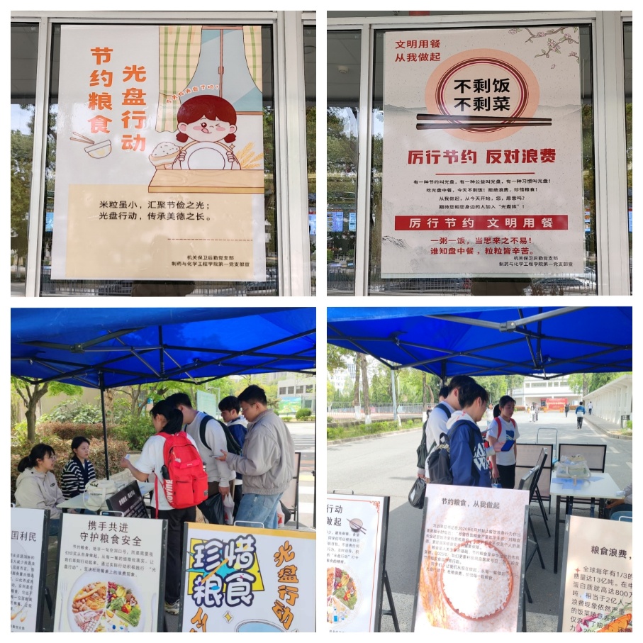 4月7日至14日,为深入贯彻落实习近平总书记关于制止餐饮浪费行为的重要指示批示,增强全校师生的节约意识,弘扬勤俭节约的传统美德,机关保卫后勤党支部联合制药与化学工程学院第一党支部在校园内举办了“惜粮健体,轻享生活”——节约粮食与体重管理主题党日活动。
