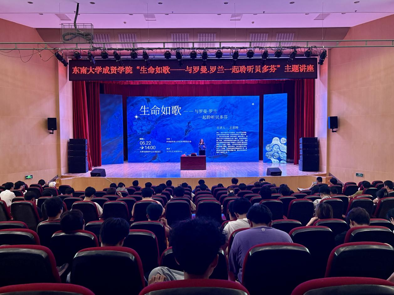 为落实江苏省高校美育工作要求,提升学生审美与文化素养,5月22日下午,校团委、大学生艺术指导中心在综合楼 313 报告厅举办“江苏省高校美育大讲堂”优课进校园活动。南京中医药大学王思特副教授受邀作“生命如歌——与罗曼・罗兰一起聆听贝多芬”主题讲座。