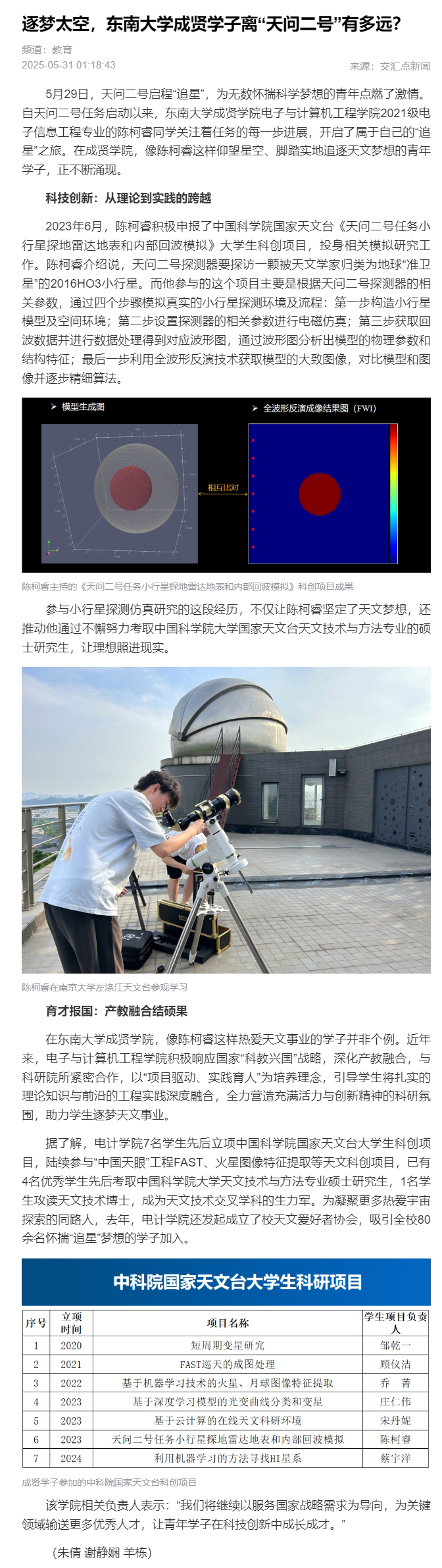 【交汇点新闻】逐梦太空,东南大学成贤学子离“天问二号”有多远?