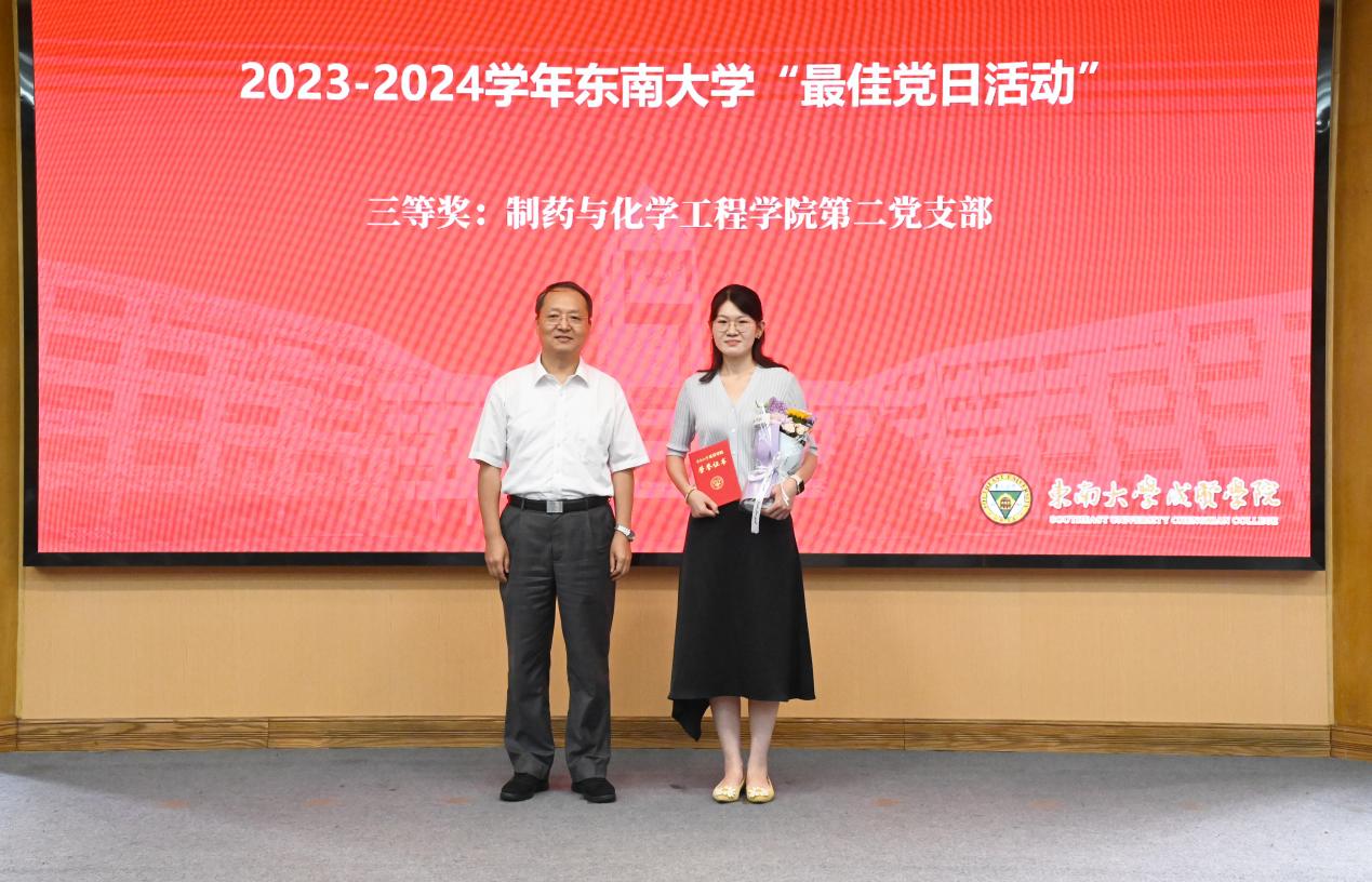 党委书记张志胜为2023—2024学年东南大学“最佳党日活动”获奖老师颁发荣誉证书