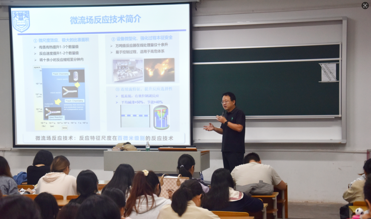 本次讲座为师生们搭建了近距离接触前沿化工技术的优质平台,让在座师生能够了解微化工技术在精细化学品连续制造领域的应用前景,进一步开阔了专业认知边界。同时,讲座也为制药与化学工程学院良好学术氛围形成,培育契合行业发展需求的高素质化工人才注入了新动能。
